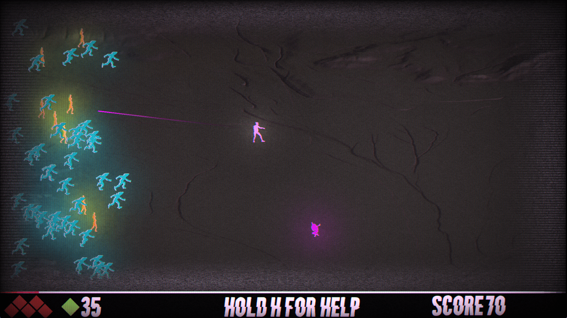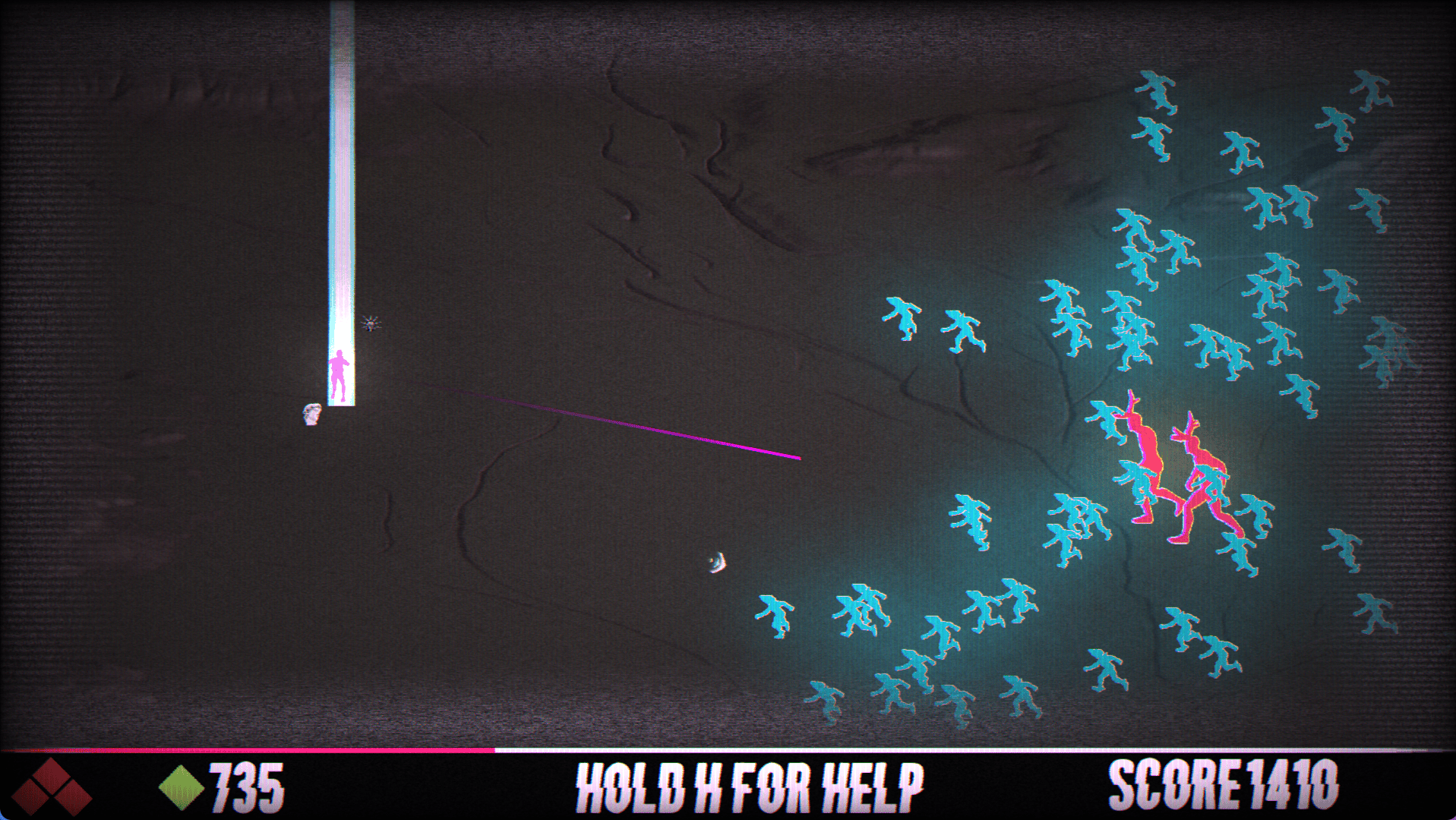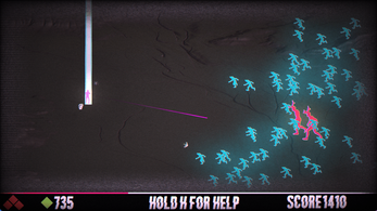 A wave based, score attack, roguelite adjacent action arcade game with tons of style and a concerning amount of shaders.